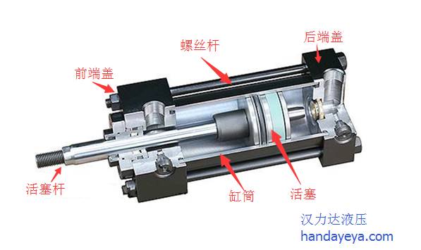 通常情況下,液壓缸由后端蓋、缸筒、活塞、活塞桿和前端蓋等主要部分組成。